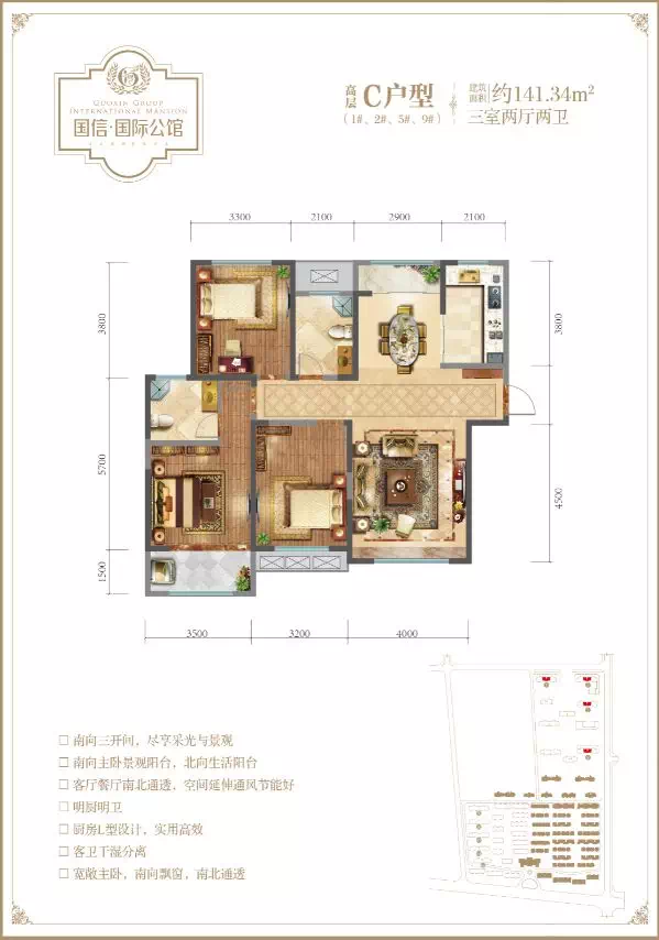 建面约140-167㎡稀缺多层洋房,103-141㎡主流瞰景高层,户型空间布局做到双卧或三卧加客厅朝阳,三面宽、四面宽设计,兼顾南北通透,畅享轻奢起居。