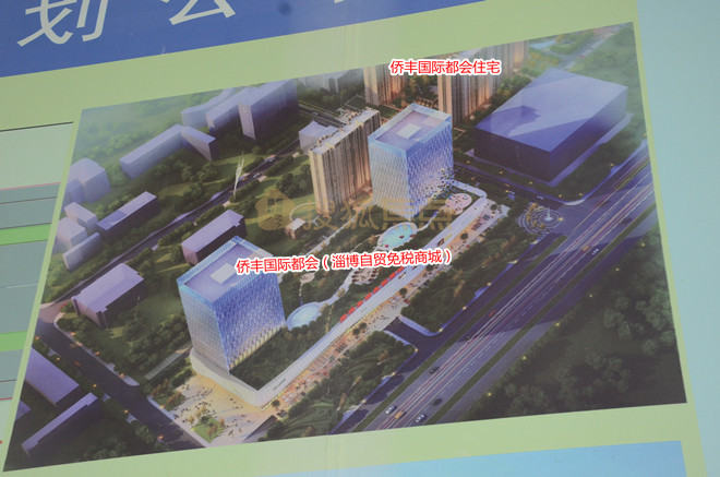 侨丰国际都会位于鲁泰大道以南、天鸿路以东、蓝海大酒店西侧,项目主打的是免税,建成后将与银泰城、银泰城二期、淄博茂业中心,联袂形成鲁泰大道3公里范围内80万平方米的购物中心。