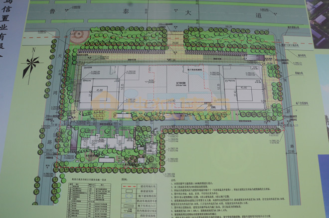公示牌显示,项目总用地面积31259.91㎡,总建筑面积188369.67㎡。地上建筑面积(含保温)137499.52㎡,其中住宅部分建筑面积为22931.33㎡,商业部分建筑面积43979.10㎡,商务办公楼69649.40㎡。综合容积率为4.5,其中商业用地和商务用地均为5.0,二类居住用地3.1。绿地率25.02%。机动车停车位1238辆。