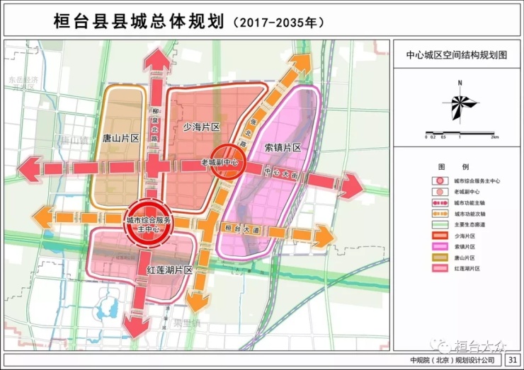 四轴,依托柳泉北路和中心大街构建两条城市功能主轴,依托张北路和桓台大道构建两条城市功能次轴。