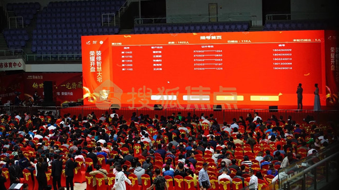 8点30分左右,开盘现场座无虚席。上午9点14分,开场舞《鼓舞》惊艳开场,9点18分开盘大幕拉开。淄博市公证处工作人员上台讲话,并现场解封摇号选房电脑及摇号选房软件,摇号选房正式开始。此次开盘方式为摇号选房,淄博市公证处对此次开盘全程监督,当天推售的所有房源全部售罄,淄博碧桂园·翡丽公馆首次开盘取得圆满成功。此外,经过325轮摇号,所有认筹客户也被一一摇出并公示。