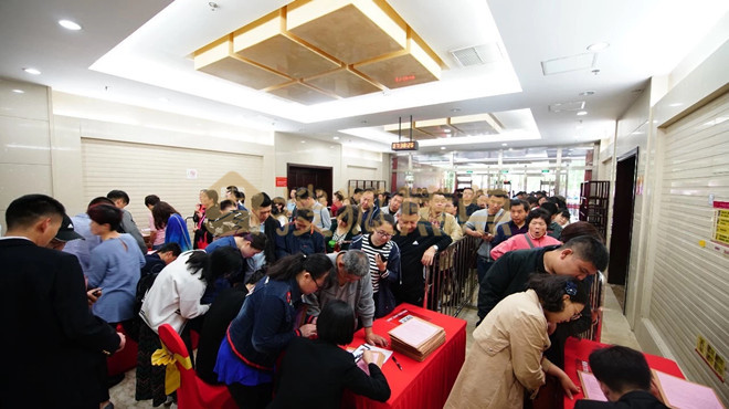 开盘当天,不到7点钟便有众多客户在入场口焦急的等待,客户们参与选房的热情十分高涨。上午7点30分,签到入场正式开始,经过安保和工作人员严格的身份确认后,客户们有序进场。在签到区,特别安排了大量的工作人员及安保人员,为客户一一进行线上签到并派发资料袋,客户们有序领取入场。
