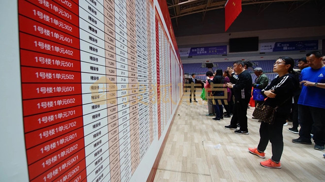 在开盘现场,客户们依次落座,主持人不断为大家讲解此次摇号选房的规则和流程,让客户们有了更加清晰的了解,客户们静静等待摇号选房的开始。在价格公示区,也聚集了许多客户,他们认真查看自己意向房源信息。