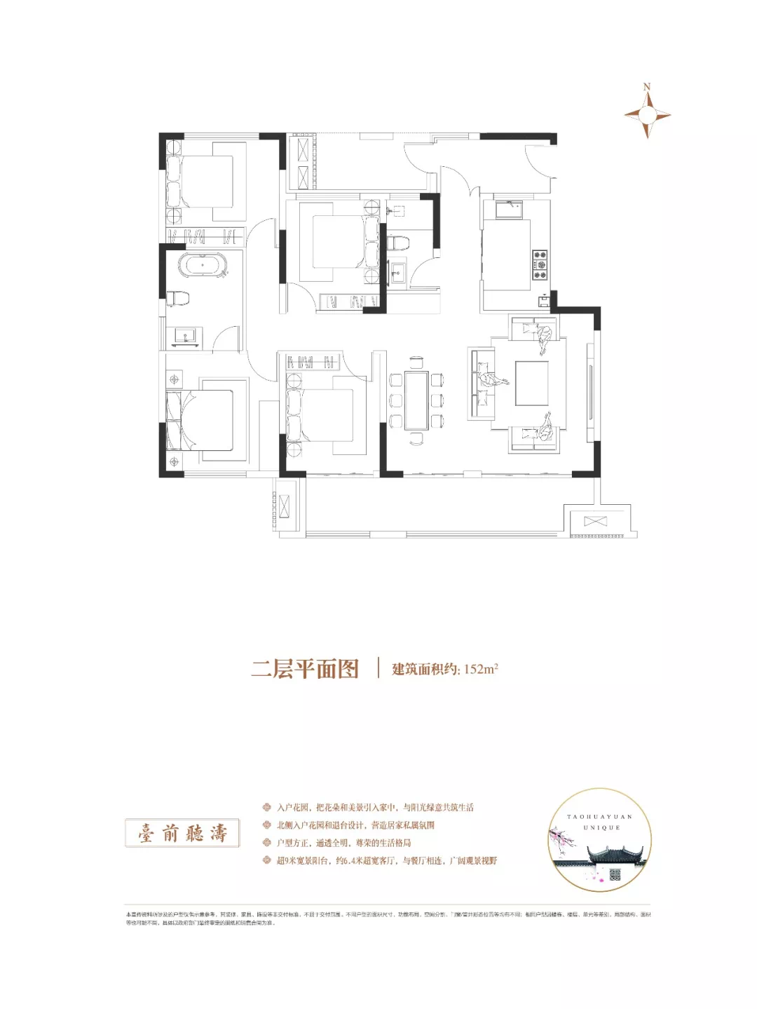 建面约140㎡缘溪和风,取自“缘溪行,忘路之远近”之意,户型经典,奢阔四室。